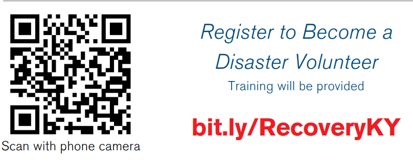 New volunteers will receive training to support people impacted by disasters in our community. Opportunities will be available to engage in ongoing recovery operations in Southeast Kentucky. Trained volunteers will also be able to help in future disasters. Register now at https://bit.ly/RecoveryKY.